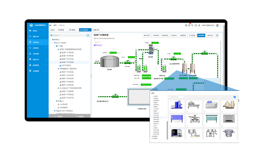 通過將網關的數據接入到物通博聯工業數據云平臺,可以實現對CNC的數據進行遠程監控,通過平臺的組態功能可以自由繪制組態監控畫面,實現電腦端和手機端的設備運行狀態和工藝流程的可視化組態監控。