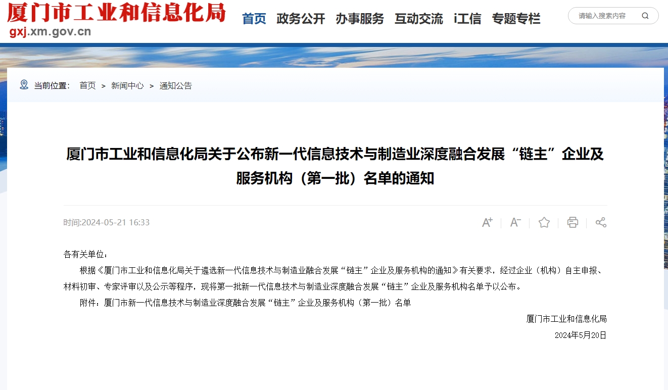 近日,廈門市工業和信息化局公示了【廈門市新一代信息技術與制造業融合發展“鏈主”企業及服務機構(第一批)名單】的遴選結果,物通博聯憑借專業的數字化轉型服務能力和高質量的落地服務經驗,入選廈門市首批“新一代信息技術與制造業深度融合發展云服務商(平臺)”。