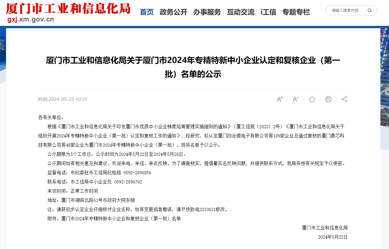 5月22日,廈門市工業(yè)和信息化局公布了《關(guān)于廈門市2024年專精特新中小企業(yè)認(rèn)定和復(fù)核企業(yè)(第一批)名單的公示》,廈門物通博聯(lián)網(wǎng)絡(luò)科技有限公司成功通過2024年度廈門市專精特新中小企業(yè)認(rèn)定。