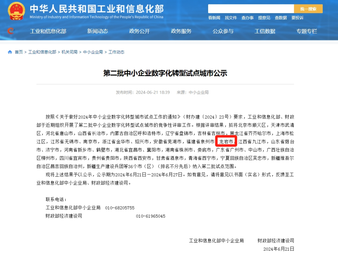 龍巖市是第二批中小企業數字化轉型試點城市,6月21日工信部、財政部對入選第二批中小企業數字化轉型試點城市名單進行公示,龍巖入選。標志著龍巖市在推動中小企業數字化轉型上邁出堅定步伐,并獲得國家認可。中央財政將對入選地級市給予1億元獎補資金,主要用于支持中小企業數字化改造、工業互聯網平臺建設、數字化服務商培育,以及支持開展咨詢診斷、人才培訓、數字化轉型融資等。