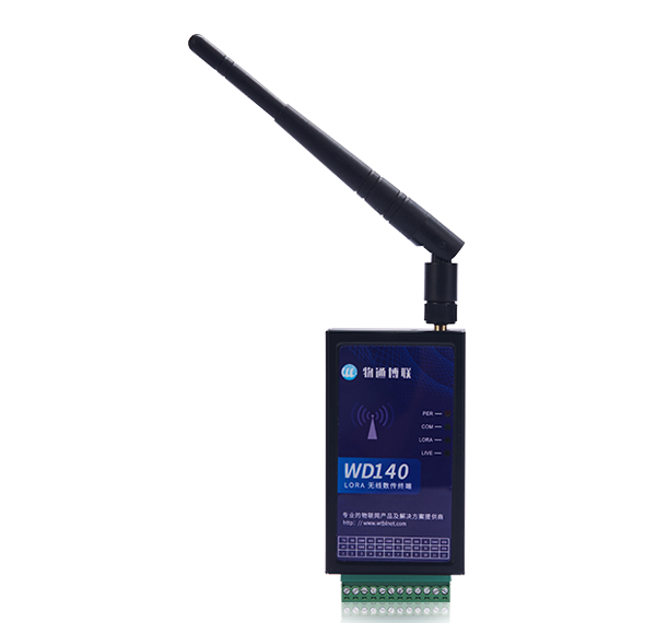 物通博聯推出的工業數采終端WD140是一款工業級Modbus I/O數據采集及LORA傳輸智能終端,支持4G無線傳輸和LORA無線傳輸、支持IO數據采集、支持Modbus RTU協議和無線透傳等功能。WD140本身具有的模擬量采集,數字量采集和數字量控制功能,可以在一些應用場合直接替代PLC實現無線I/O采集和控制,不僅易于施工而且節省成本。