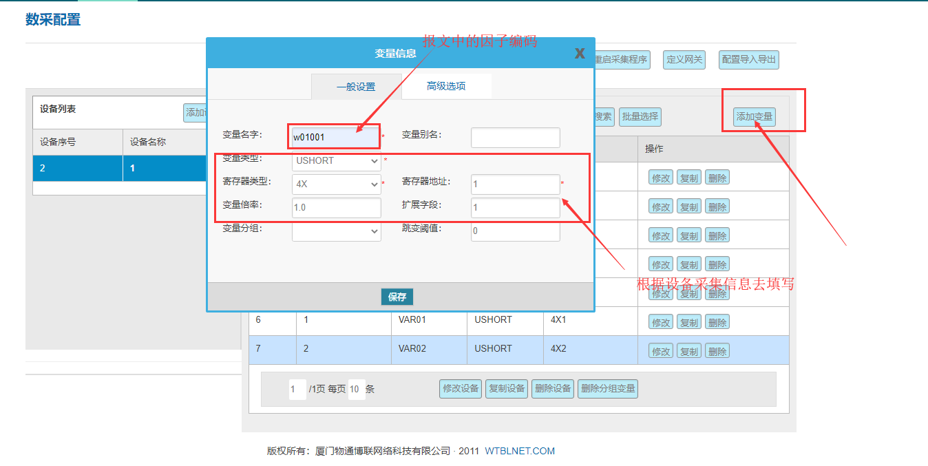 添加變量:變量名稱對應212報文中的監測因子編碼,最后記得重啟采集程序才能生效配置。
