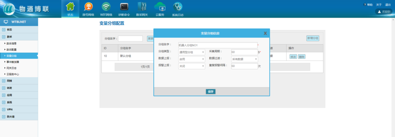 分組:數據采集涉及多個采集時間、數據過濾、報警時,可通過變量分組控制,變量需要選擇到設定好的變量分組中。