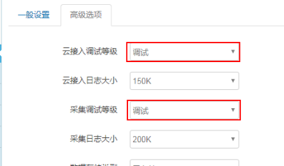 日志設(shè)置路徑:網(wǎng)關(guān)---云服務(wù)中心---云接入調(diào)試等級與采集調(diào)試等級.為了保證網(wǎng)關(guān)快速高效采集,調(diào)試完畢后請務(wù)必將網(wǎng)關(guān)采集日志和云接入日志等級調(diào)整為信息。