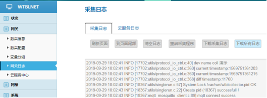 網(wǎng)關(guān)運行出現(xiàn)異常時,請將日志狀態(tài)調(diào)整為:調(diào)試。下載網(wǎng)關(guān)日志發(fā)送至物通博聯(lián)技術(shù)支持工程師處診斷。