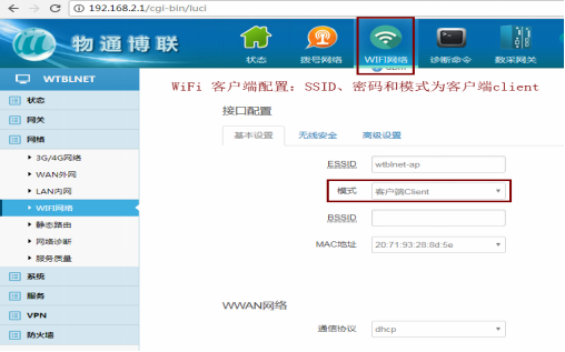模式:客戶端Client(通過WiFi上外網(wǎng)請(qǐng)選擇client模式,如果是共享WiFi給其他設(shè)備請(qǐng)選擇AP模式)