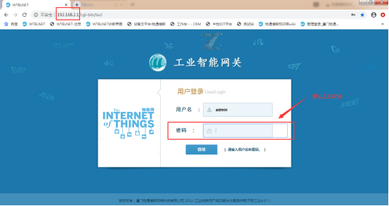 打開瀏覽器輸入網關地址192.168.2.1,登錄密碼默認為123456(如有修改請按實際填寫)