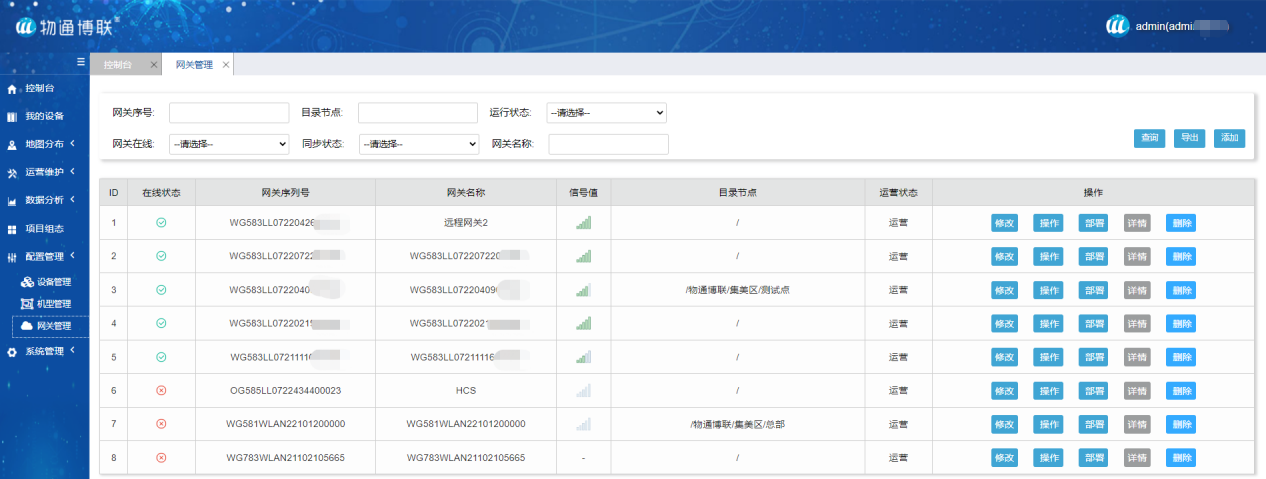 產品系列 工業智能網關 物通博聯·WG系列工業智能網關是一款支持采集各種PLC,儀器儀表,水環保,電力設備,CNC等各種工業設備數據,具有協議解析,邊緣計算的高可靠性工業智能網關,是構建工業互聯網系統的核心邊緣節點。 PLC網關 MQTT網關 OPC網關 Modbus網關 協議轉換網關 水文水利網關 環保采集網關 能源采集網關 機床采集網關 機器人數采網關 注塑機采集網關 了解更多 工業數采終端 物通博聯·WD系列工業數采終端,主要實現對現場工業設備的數字量DI、DO,模擬量AI,AO的采集和控制,實現LORA本地組網和4G數據上云的功能,從而實現對現場傳感器、執行機構、指示燈等數采和控制。 LoRa終端 LoRa網關 DTU RTU 4G無線IO WIFI無線IO 了解更多 工業聯網終端 物通博聯·工業聯系終端包含WR系列工業無線路由、WC系列網段隔離器和WS系列工業交換機。 支持5G/4G/WIFI/以太網等方式聯網接入,支持VPN組網,為現場設備提供低時延、高可靠、高安全的網絡接入,從而實現大規模設備組網應用。 工業路由器 網段隔離器 工業交換機 了解更多 設備遠程維護系統 物通博聯·設備遠程維護系統是一套實現對分散式設備遠程維護和運營的軟硬件系統,為工程師搭建一條通往遠端設備現場的安全數據通道,實現對現場設備(PLC)的遠程配置、遠程診斷、遠程調試和遠程升級程序。 設備遠程配置 設備遠程調試 遠程上下載程序 設備遠程維護 設備遠程監控 設備預防式維護 了解更多 工業設備數據平臺 物通博聯·工業設備數據平臺是一款高并發的工業設備遠程管理和工業設備數據可視化的云平臺,廣泛應用于智能工廠數采中臺、遠程設備運營管理平臺、各行業的物聯網數據云平臺等。 海量設備接入 高效數據采集 豐富組態控件 強大的數據分析 預防式設備維護 豐富的API接口 了解更多 設備遠程接入平臺 物通博聯·設備遠程接入云平臺是一款針對分布式設備數據實時監測的快速接入平臺,采用SAAS云服務方式為工業現場的各種工業設備的數據互通互聯建立實時在線的數據通道。 分布式項目監控 設備互通互聯 無需公網IP 快速低成本接入 實時在線通道 點對點通信 了解更多