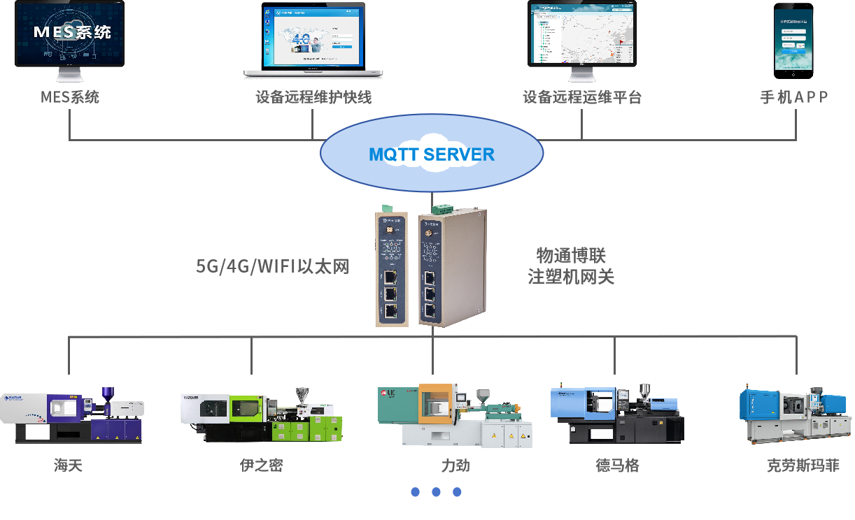 數據上云:實現對各種種類的注塑機設備的遠程接入、遠程管理、遠程監控和數據應用