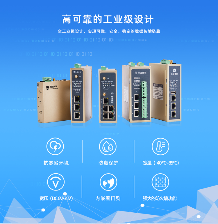 物通博聯網關全工業級設計,滿足不同工業場景的使用需求,配置簡單,使用物通博聯