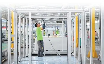 近年來,江西省大力培育專精特新企業,給予企業新增融資貼息、貼保等補貼支持。圖為在贛州市贛縣區的一家環境科技企業內,工人在生產線上趕制出口國外的智能中央空調零部件。 朱海鵬攝(影像中國)