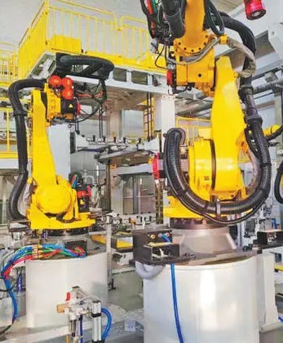 河北保定長城精工自動化工廠,5G—A汽車柔性產線上,龐大的機械臂吸起汽車頂蓋,空中盤旋一圈,便涂抹完頂蓋上的膠條,一套動作行云流水。