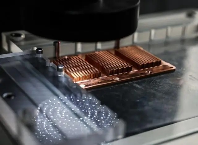 2024年4月16日,在位于諸暨市的海特信科新材料科技有限公司檢測(cè)實(shí)驗(yàn)室內(nèi),工作人員在檢測(cè)用于新能源汽車(chē)的針式散熱銅基板。新華社記者 徐昱 攝