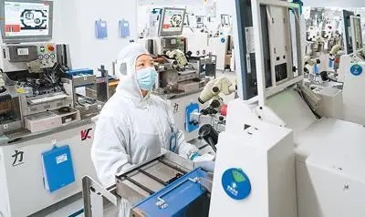 11月3日,在江蘇南通如東經濟開發區的南通寧芯微電子有限公司,工作人員在裝片焊線車間內作業。新華社記者 李博 攝