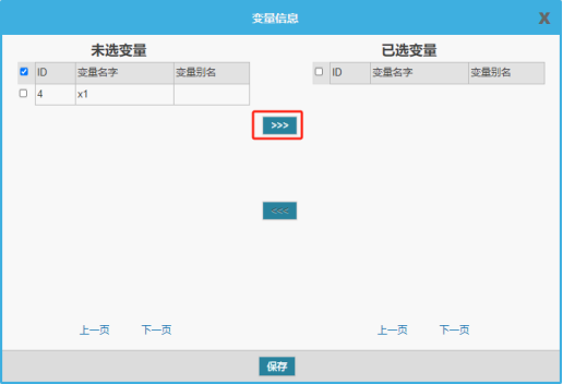 將未選變量下的變量添加到已選變量中,點擊保存。
