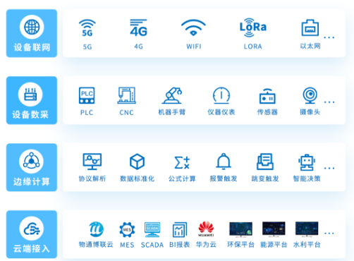 2、支持多種網絡傳輸方式,用戶可根據實際生產環境靈活選擇。在復雜工業環境下,5G/4G 傳輸方式能有效避免電磁干擾等問題,確保數據穩定傳輸;WIFI 和以太網傳輸則適用于網絡環境較好的車間場景,實現高速、低延遲的數據傳輸,保障生產數據的實時性。