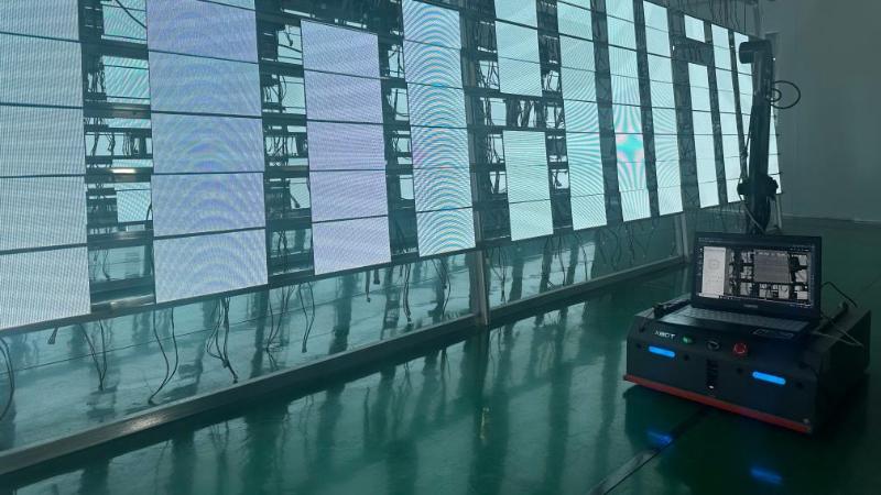 鑫彩晨光電科技有限公司,無人AGV小車正在巡檢。