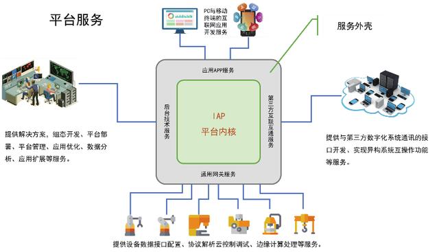 為此,必須要有一種操作系統性質的基礎軟件來維持這樣的關系,并且能夠適應這種關系可能發生的各種變化。圖2是在工業互聯網4層架構基礎之上建立的一種新的體系架構表達形式。其中,工業互聯網內核包含了大量的計算資產,它們的作用是對工業互聯網的數據進行處理,并將處理結果返回工業系統中的管理者與生產者,以及對應的工業設備。我們把具有這種特征的內核稱為一種平臺。在平臺的外部包裹著一圈軟件服務資產,分別提供:工業互聯網與工業設備之間的數據通訊服務,工業互聯網開發、部署、運維等后臺支持服務,工業APP數據通訊服務,以及工業互聯網與其它信息技術系統的第三方數據通訊服務。總之,這里所謂軟件服務資產本質上就是一組與平臺外的信息系統維持數據通訊的功能模塊。