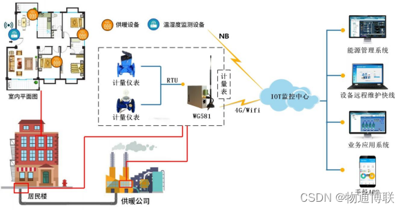智慧供暖是物通博聯針對以上問題開發(fā)的工業(yè)物聯網方案。通過工業(yè)網關將供暖系統(tǒng)連接起來,對溫度、壓力、流量、開關量等等數據進行采集,實現遠程監(jiān)控、遠程控制和遠程維護。