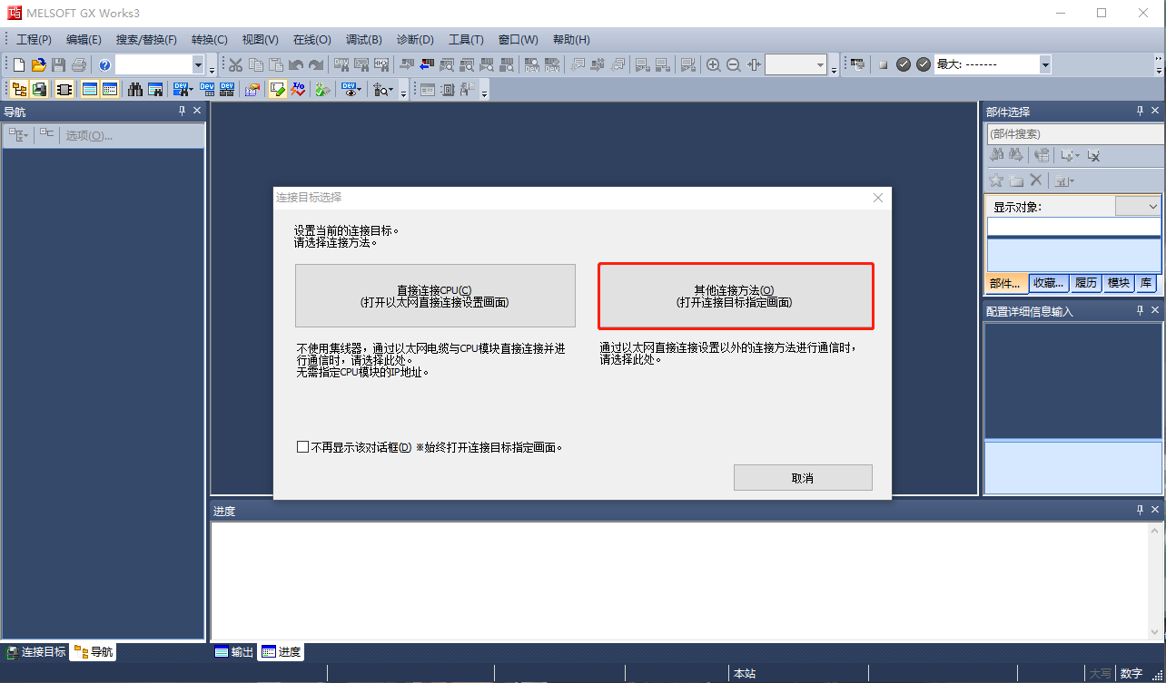 2、打開MELSOFT GX Works3,選擇控制器系列,設置“其他連接方式”通訊。