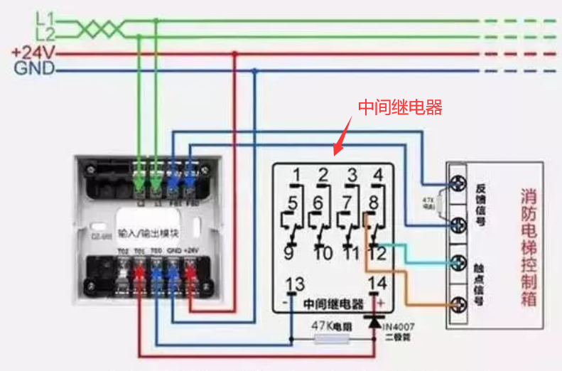 被接設備接入端無電壓,接入繼電器的13、14腳。