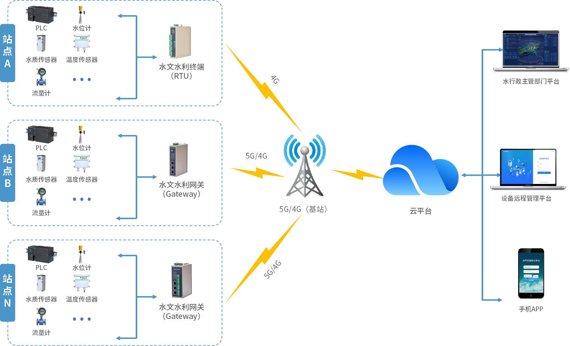 對此,物通博聯提供地下水在線監測預警系統解決方案。地下水監測井一般在野外,內部包含水位計、流量計、水溫計、水質監測儀等傳感器,通過接入物通博聯水利水文網關(RTU)并通過5G/4G無線網絡遠程傳輸到水行政主管部門平臺中,可以實現對水位、水量、水溫、水質等多種參數的實時在線監測、超限預警、智能管理等功能,為地下水監測管理提供高效、精準、可靠的工作手段。