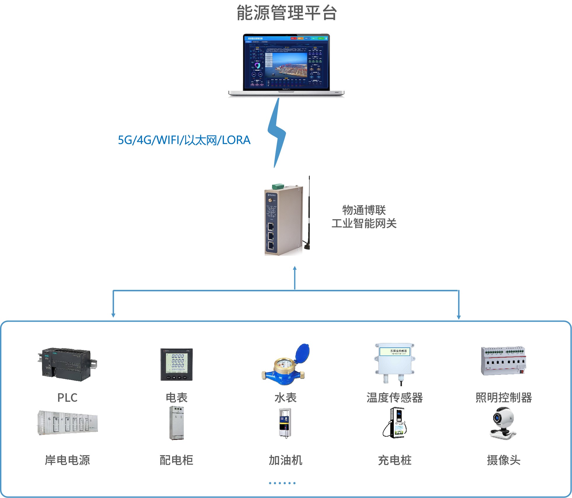 實時采集港口各類用能設(shè)備(起重機、堆高機、高桿燈、制冷設(shè)備等)的能耗數(shù)據(jù),并實時上傳至能源管理平臺,管理人員能夠通過手機端電腦隨時查看能耗數(shù)據(jù)變化。