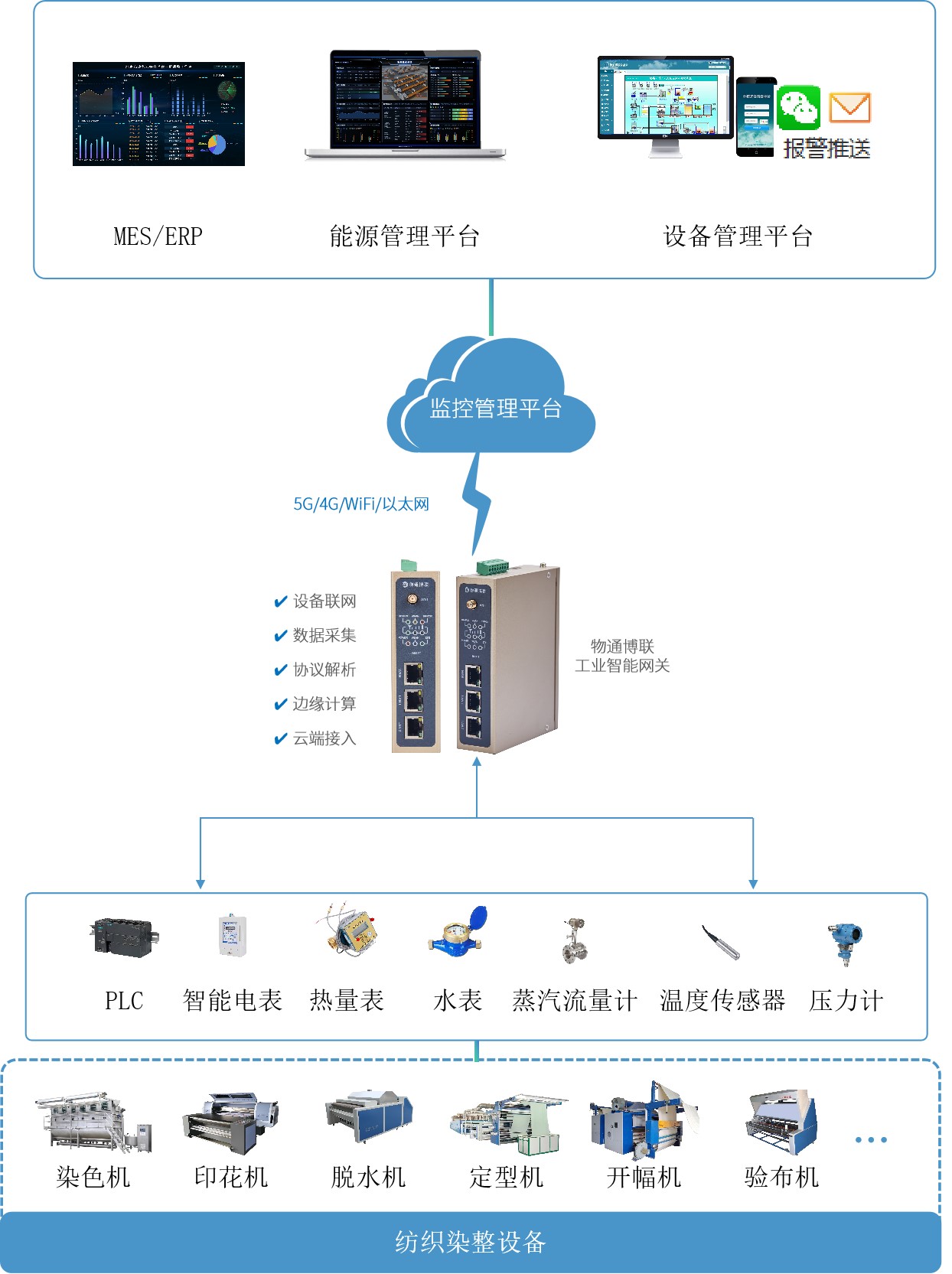 物通博聯(lián)工業(yè)智能網關支持接入PLC、儀器儀表、傳感器、數控機床、工業(yè)機器人等設備,實現(xiàn)“一對多”數據采集,同時具備斷點續(xù)傳能力,能夠有效替代人工抄表,確保數據完整。